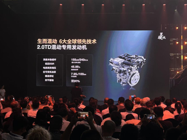 作为全球首款纵置 2 挡混动专用变速箱,其 98% 的传动效率堪称行业标杆,配合热效率 45.95% 的 2.0TD 发动机与 300kW 超级 P4 电机,构建出 “三电机真四驱” 架构。这套系统的核心优势在于解决了传统混动的致命痛点: