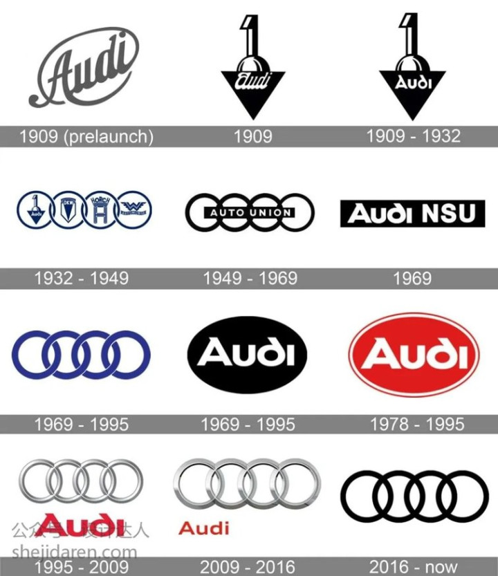 但实际上,奥迪在1909年创立的时候,创始人奥古斯特·霍希采用的就是AUDI的字母标。